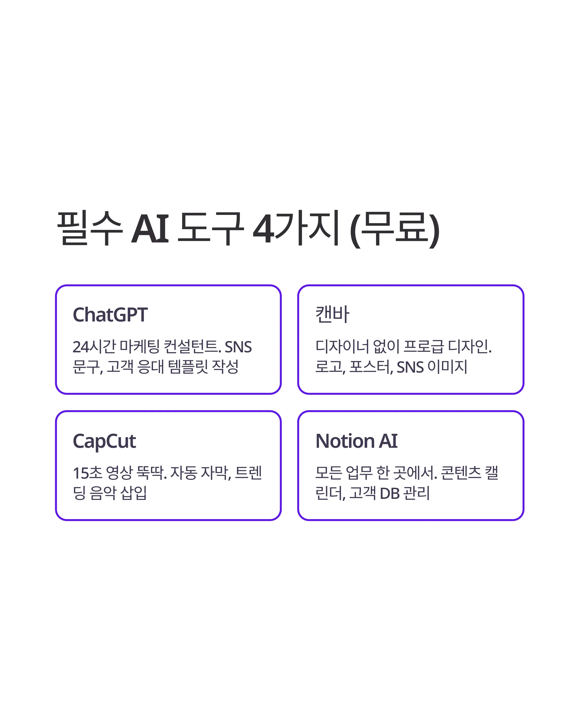 ๐ ๏ธ 1์ธ ์ฐฝ์ ์ ํ์ AI ๋๊ตฌ 4์ข ์ธํธ (๋ชจ๋ ๋ฌด๋ฃ!)
